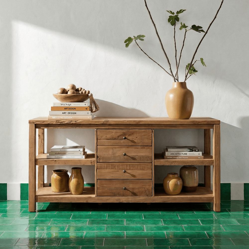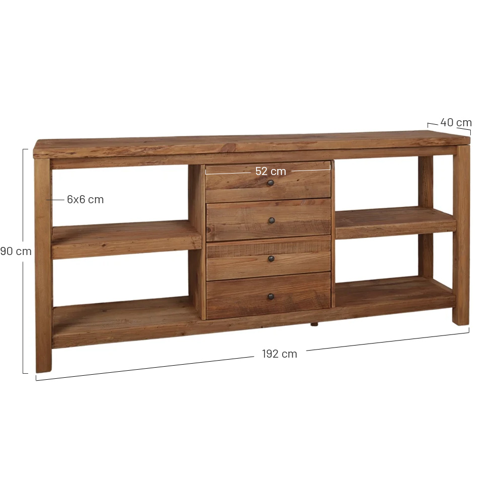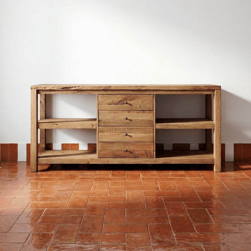 Esta peça de mobiliário é feita à mão com madeira antiga e madeira reciclada, pelo que apresenta as marcas e irregularidades do desgaste provocado pela passagem do tempo. A madeira é tratada contra caruncho, mas podes encontrar marcas de caruncho antigas neste tipo de madeira.