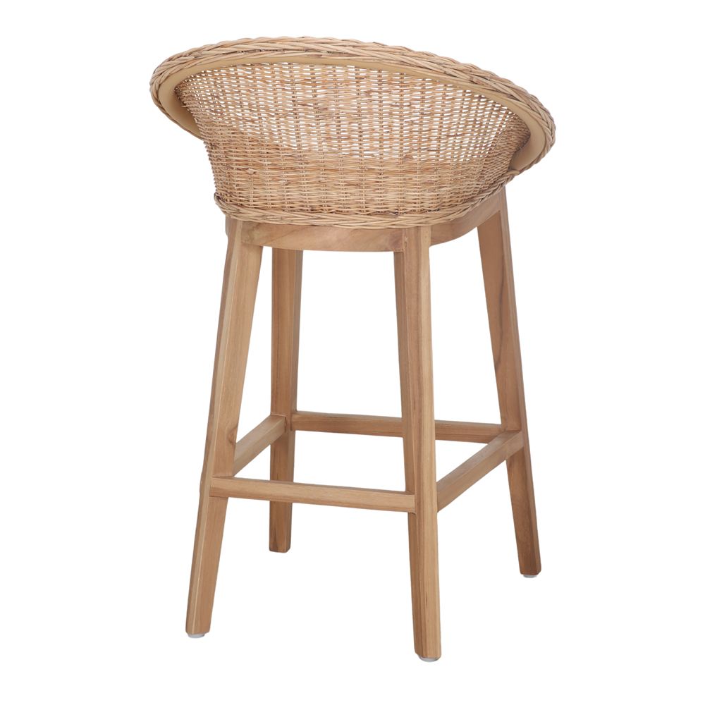 Banco de cozinha em madeira e fibra sintética Aiko, de estilo mediterrânico.