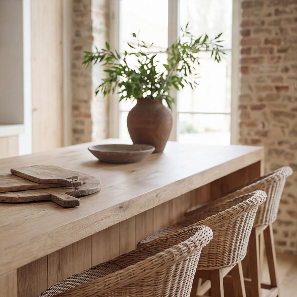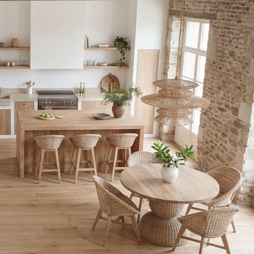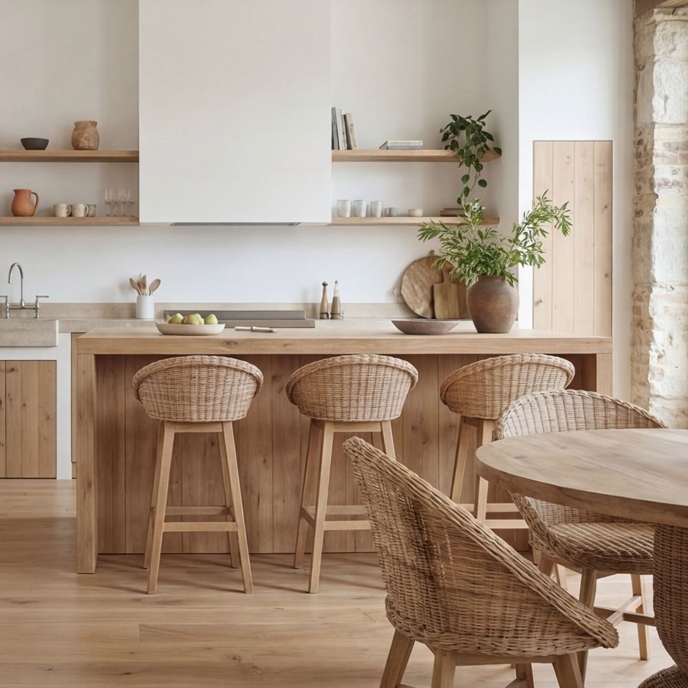 BANCO DE COZINHA EM MADEIRA E FIBRA SINTETICA AIKO