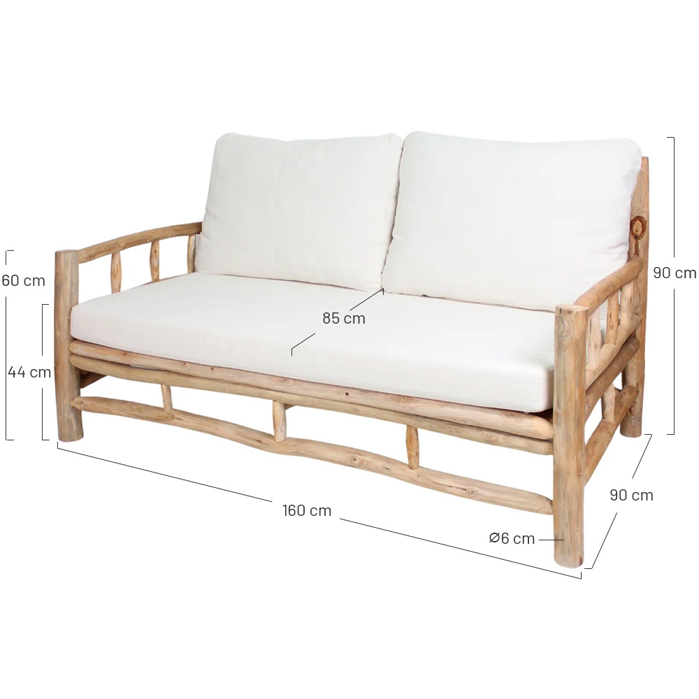 O banco de madeira Paniol com almofadas é uma encantadora peça de estilo rústico. Feito de troncos de madeira tropical maciça, este banco tem almofadas estofadas em tecido para maior conforto.