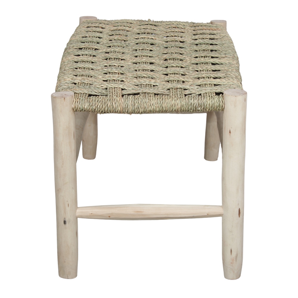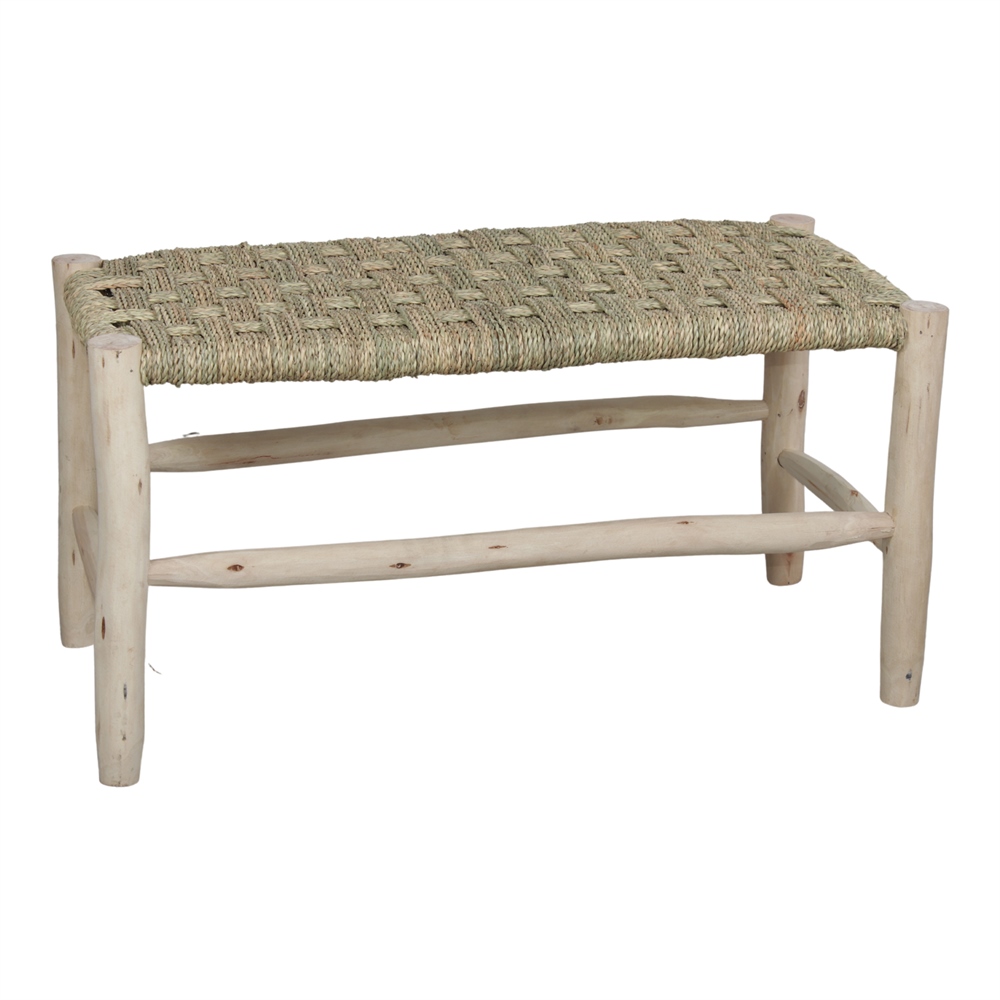 Banco em madeira Tecilen e fibra natural, estilo mediterrânico.