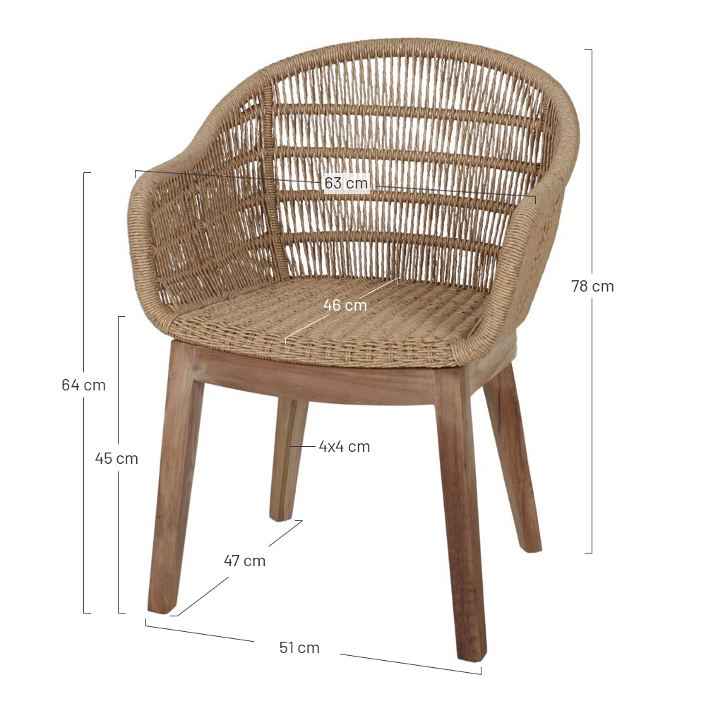 A cadeira de madeira e corda Imbili tem um design de estilo mediterrânico, ideal para dar um aspeto natural à tua sala de jantar. Tudo graças à sua estrutura em madeira tropical e à corda trançada à mão, materiais perfeitos para desfrutares da tua casa com estilo.