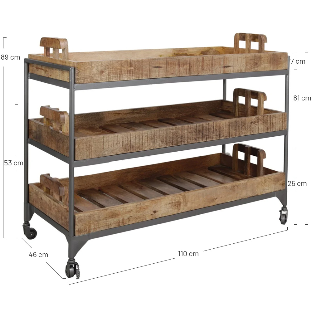 Carrinho de madeira e metal Fruty, estilo industrial.