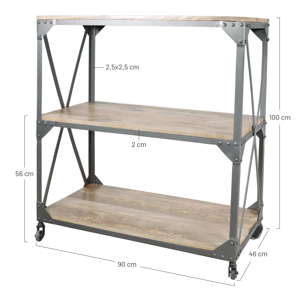Carrinho com prateleiras Mirebel, de estilo industrial.