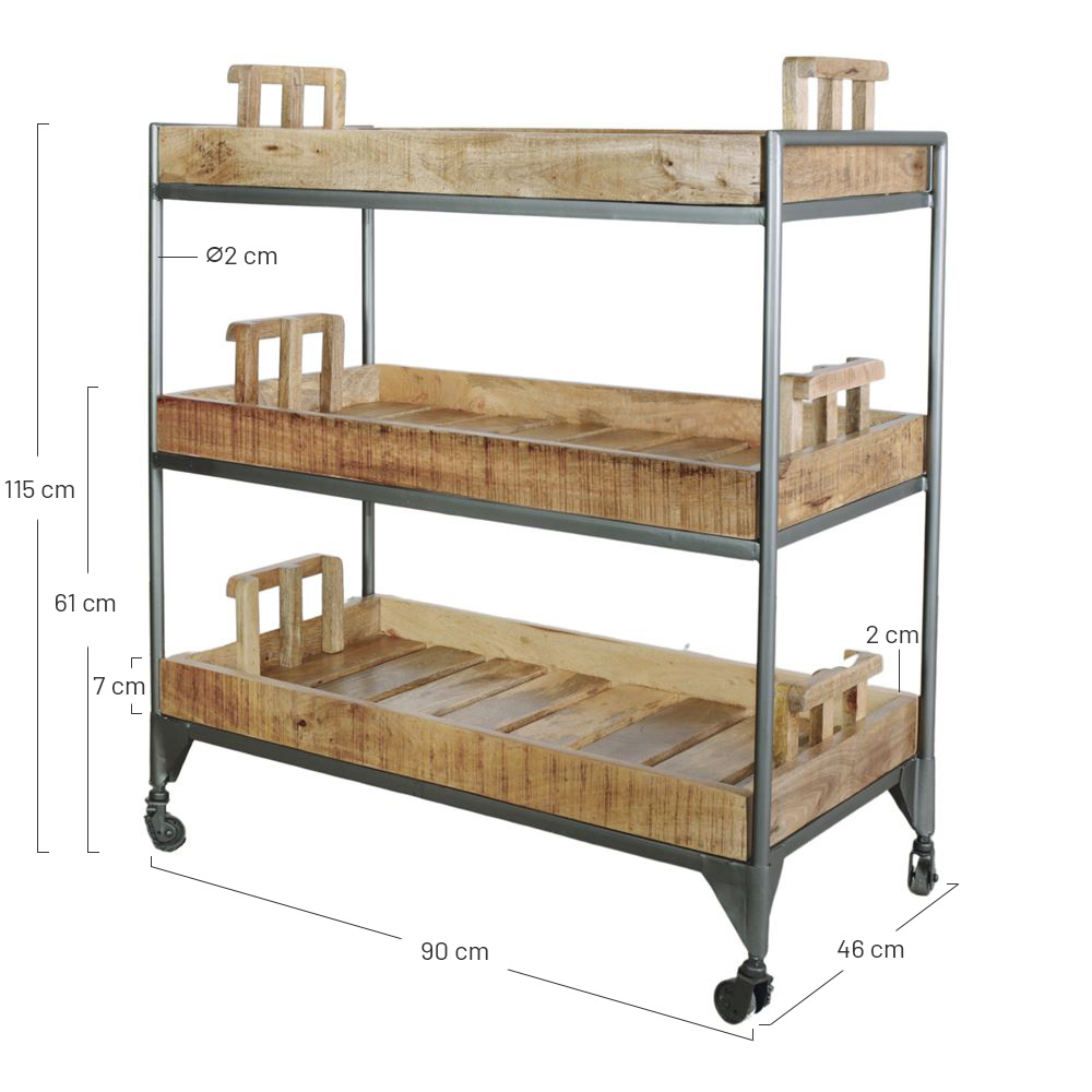 Carrinho de madeira e metal Altry, estilo industrial.