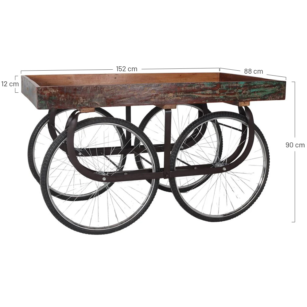 Carrinho Velocar em madeira e metal, estilo industrial.