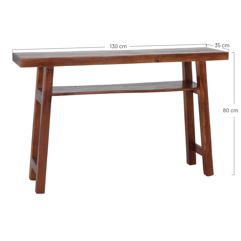 Consola retangular em madeira maciça de pinho reciclado com prateleira inferior..