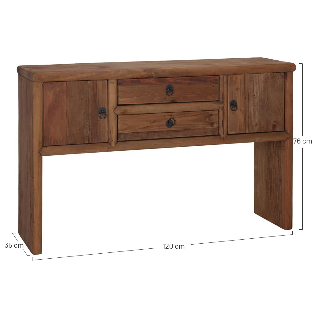 Esta peça de mobiliário é feita à mão com madeira antiga e madeira reciclada, pelo que apresenta as marcas e irregularidades do desgaste provocado pela passagem do tempo. A madeira é tratada contra caruncho, mas podes encontrar marcas de caruncho antigas neste tipo de madeira.