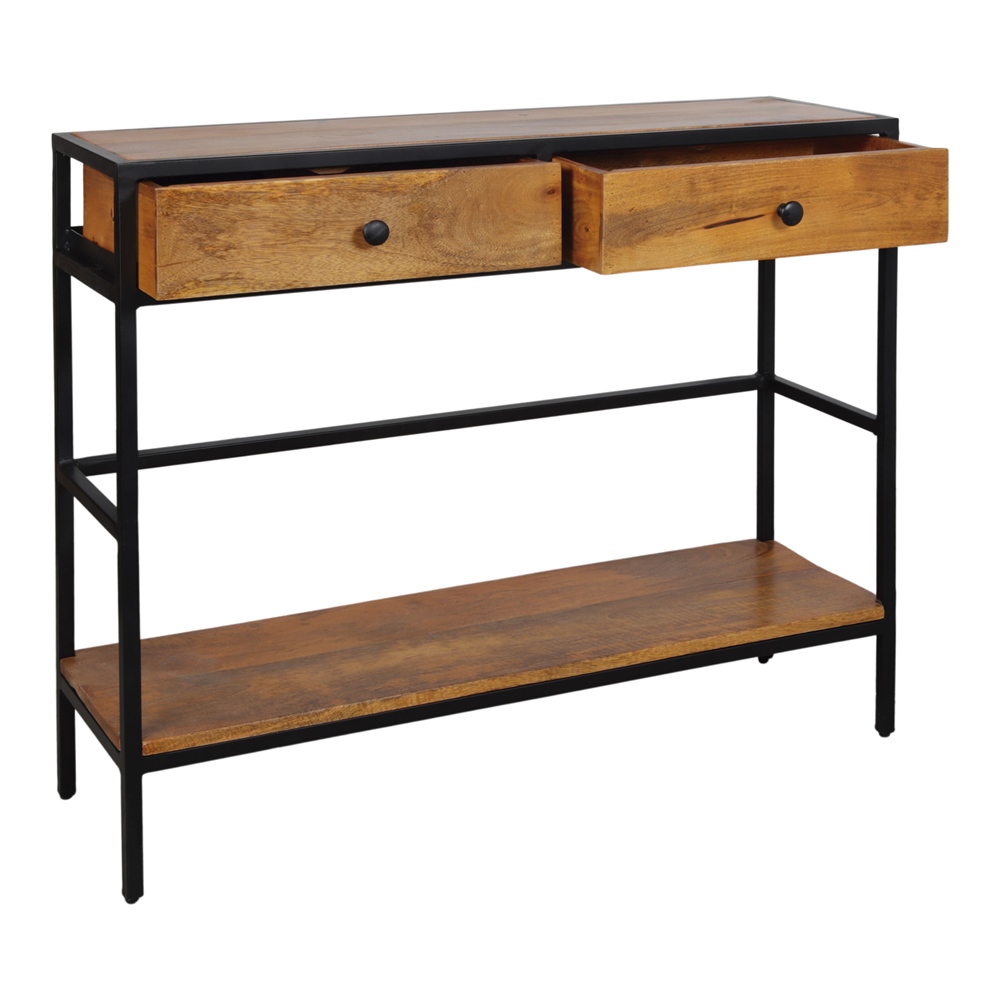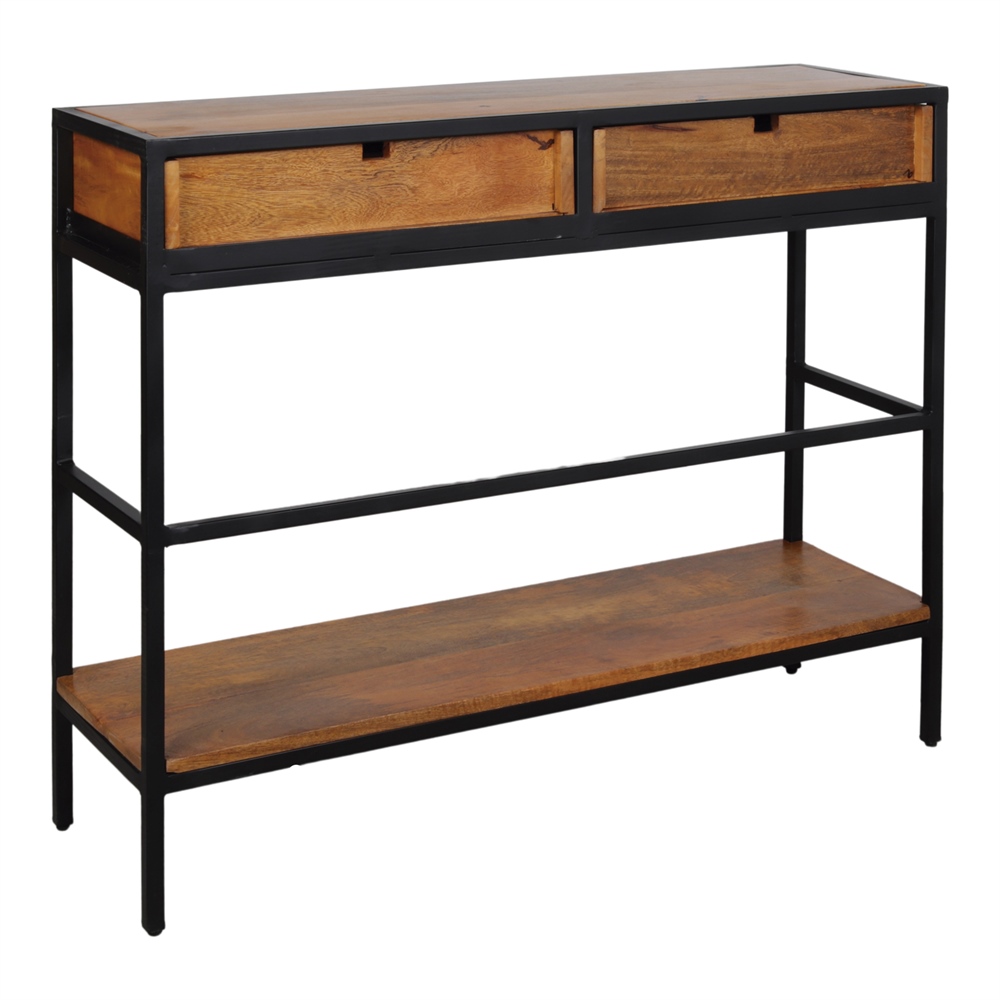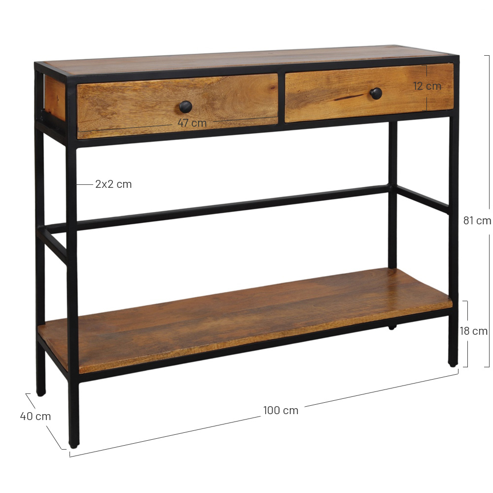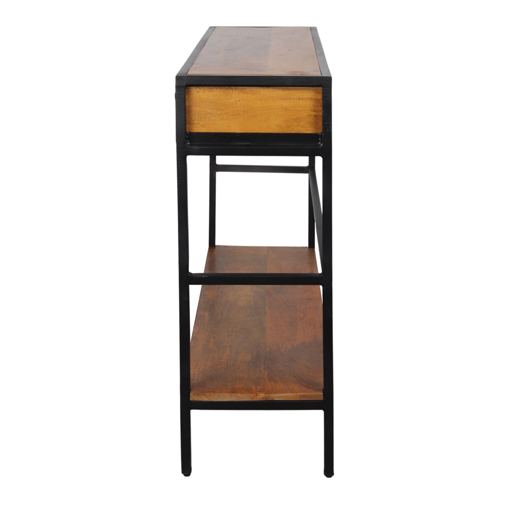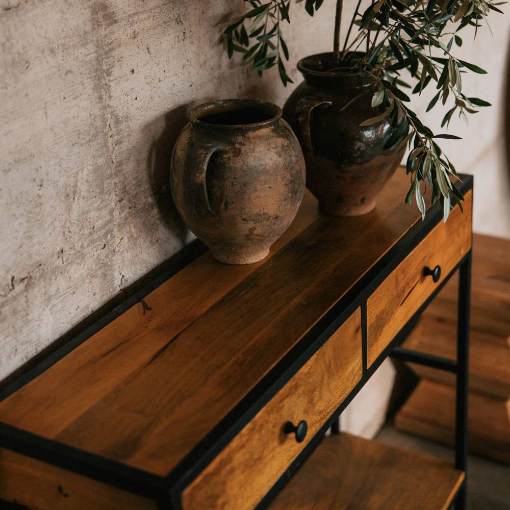 Consola em madeira e metal Riben, de estilo industrial.