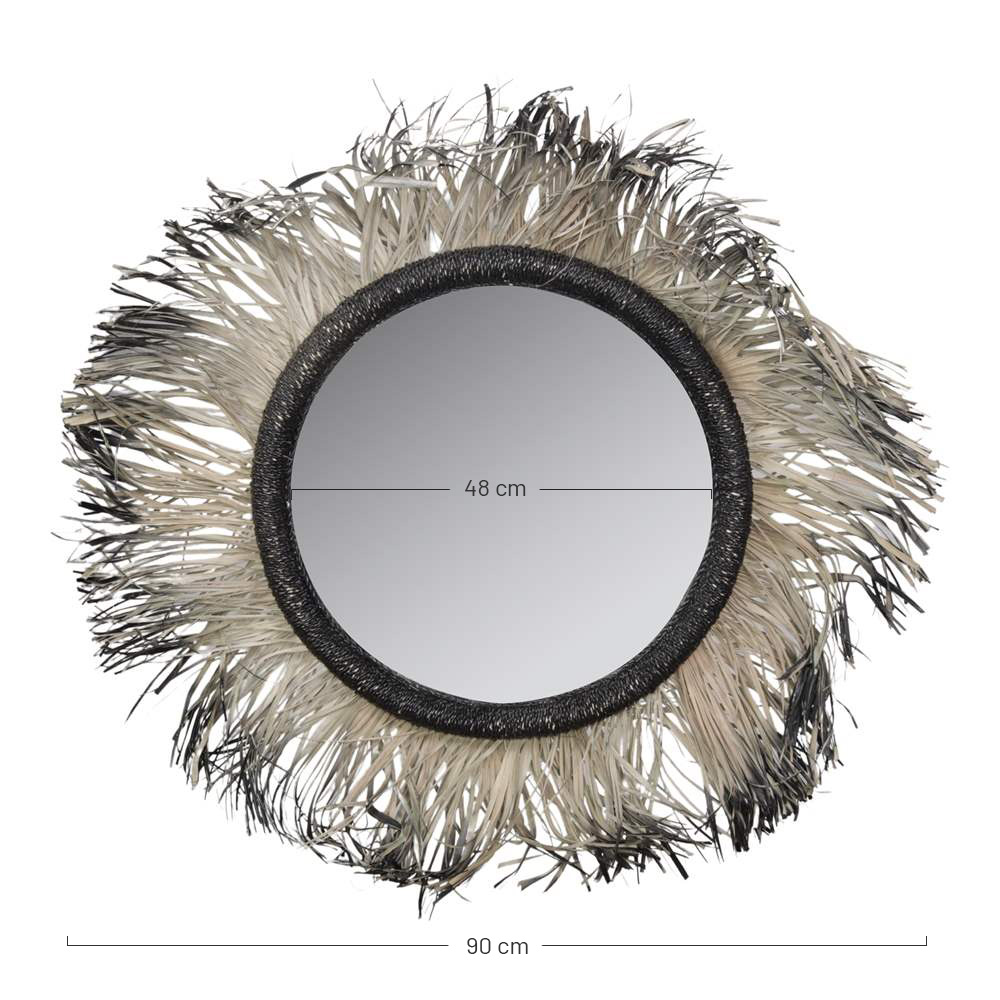 Espelho circular Ø48 cm com moldura de esparto entrançado preto.
