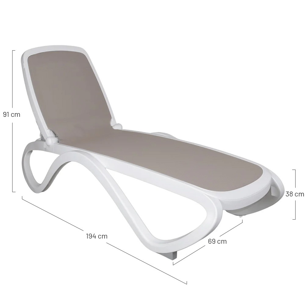 Espreguiçadeira empilhável para interior e exterior em polipropileno e Textilene.