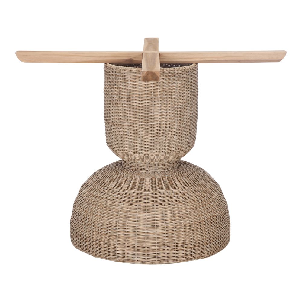 Estrutura para mesa de jantar fabricada em madeira de teca e rattan sintético.