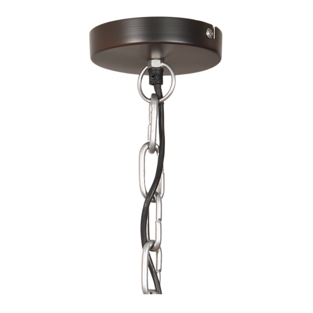 O candeeiro de teto Michigan é um candeeiro de estilo industrial, feito de metal com acabamento em giz. Com uma corrente para o pendurar, confere-lhe um estilo único, perfeito para qualquer espaço onde queiras realçar o estilo vintage ou industrial.