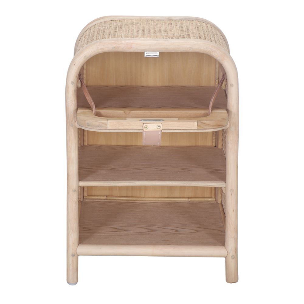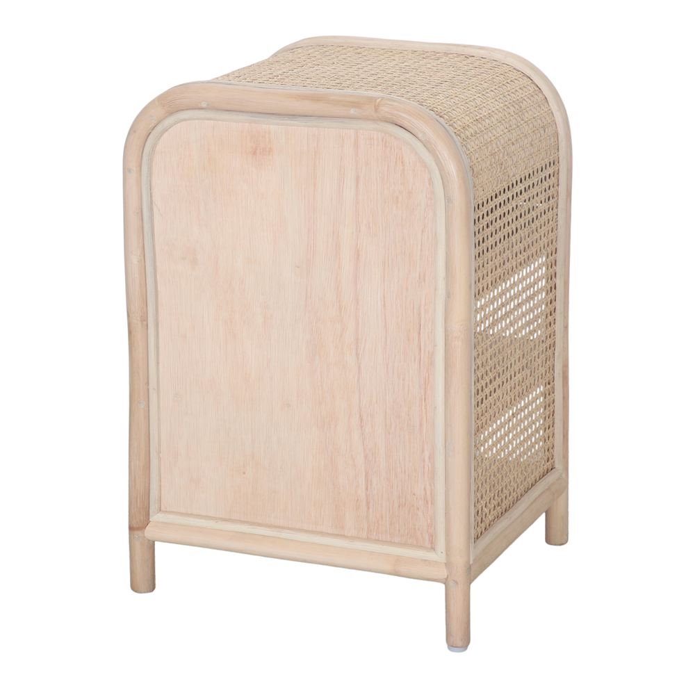 Mesa de cabeceira Lindsey em rattan, de estilo Japandi.