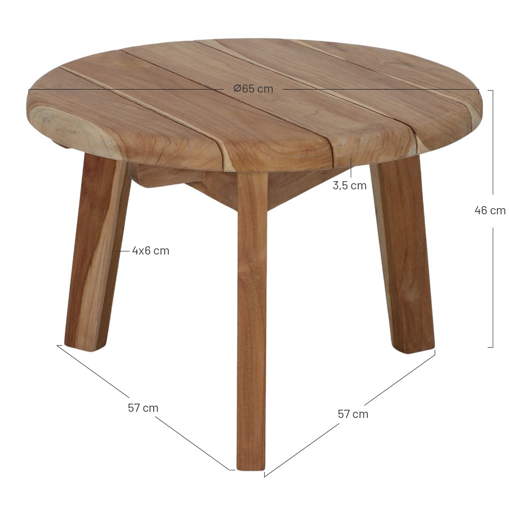 Esta mesa é feita de madeira de teca maciça, um material conhecido pela sua durabilidade, resistência e grão único que lhe confere um carácter distinto. Cada peça é única, com acabamentos que reflectem a essência autêntica e artesanal do design. O seu acabamento natural preserva a textura e a cor originais da madeira, permitindo-te apreciar a sua pureza e singularidade.