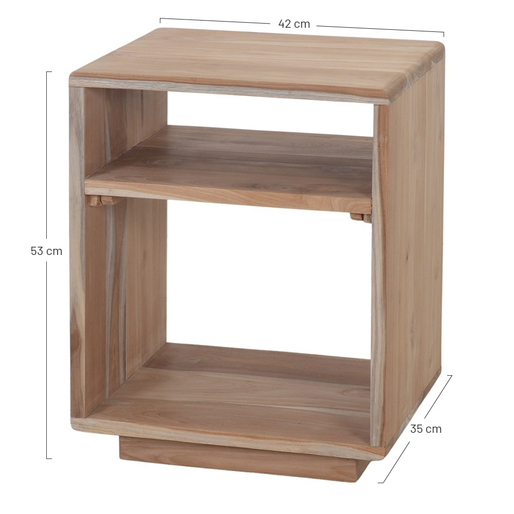 Fabricada em madeira de teca natural, com uma prateleira.