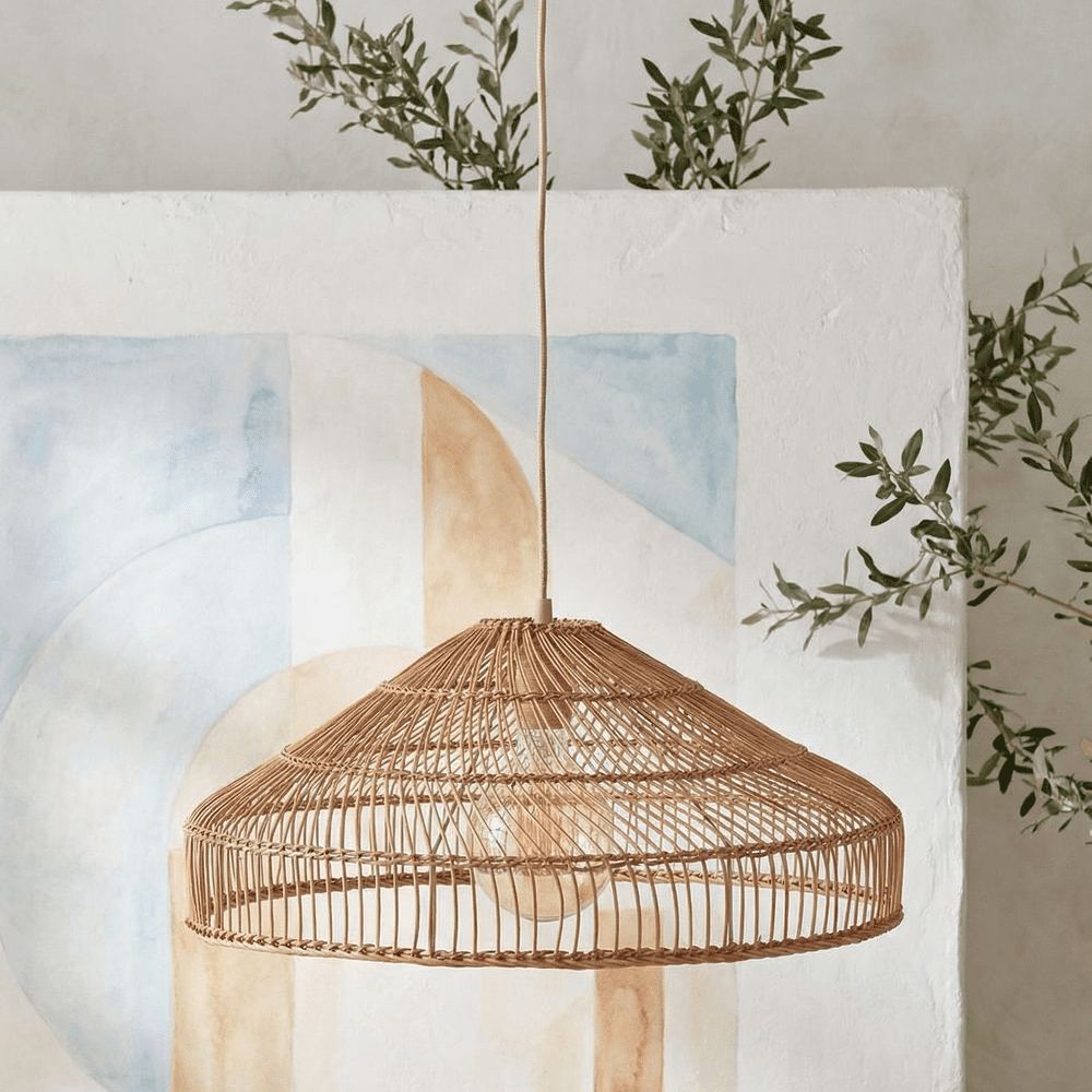 Hoje em dia, os candeeiros de teto feitos de rotim são um must have, e todos os designers de interiores e decoradores contam com um candeeiro de fibra natural para recriar uma atmosfera elegante e ter uma luz quente cheia de nuances. Combina este abajur de vime Tossy com outros candeeiros feitos de fibras naturais e terás o estilo mais pessoal nos teus quartos.