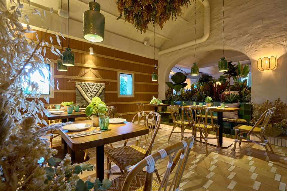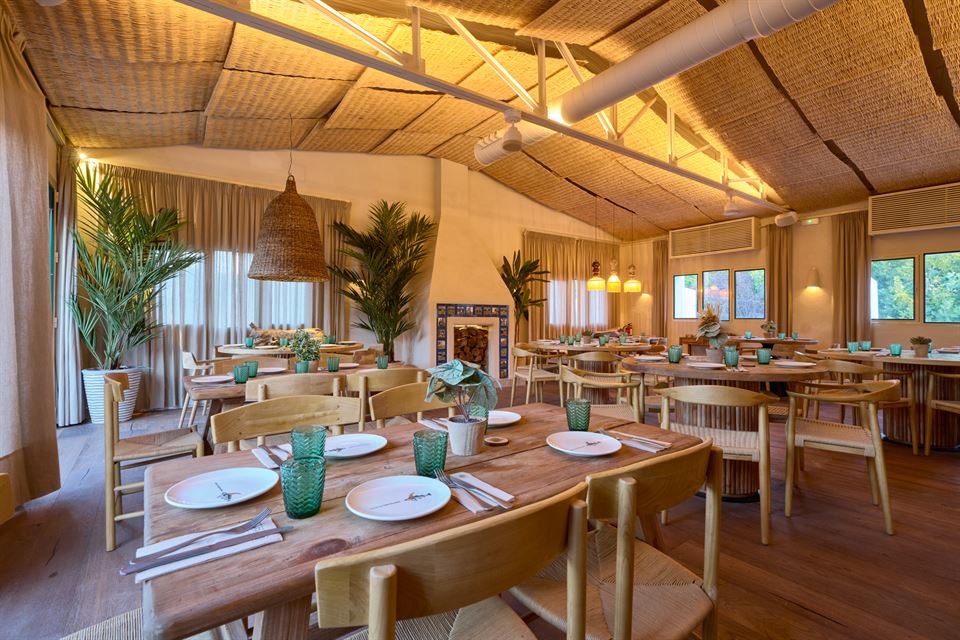 O espaço foi completamente remodelado, optando pelo estilo rústico como protagonista, onde a vegetação natural desempenha um papel muito importante. A iluminação e a decoração foram escolhidas com muito cuidado, procurando sempre a concordância, a elegância e a harmonia entre todo o mobiliário, estilo, materiais, cor e criando um ambiente descontraído e agradável para os sentidos. Neste espaço, os comensais podem desfrutar de uma maravilhosa proposta gastronómica e sentir-se confortáveis. Para o mobiliário, escolheram uma variedade de produtos do nosso catálogo, incluindo mesas de madeira, cadeiras de corda, rattan sintético e candeeiros de fibras naturais.