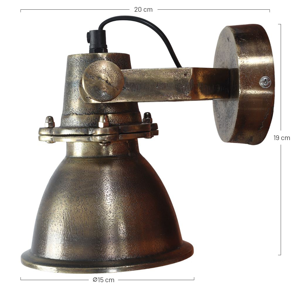 O candeeiro de parede Sangara é inspirado em luminárias industriais vintage. Este candeeiro de parede é feito de metal com um acabamento em bronze envelhecido e tem um casquilho E14.