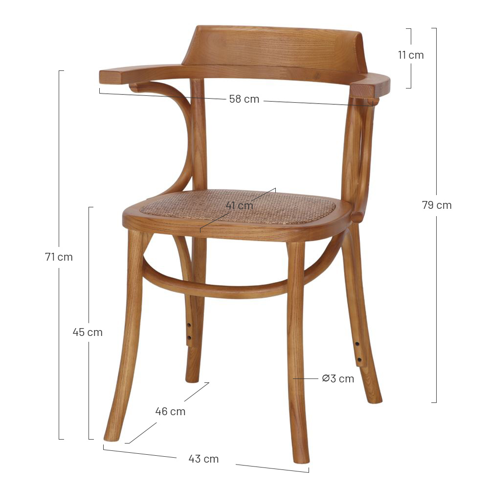 Cadeira de madeira Ematy com braços estilo Bistró.