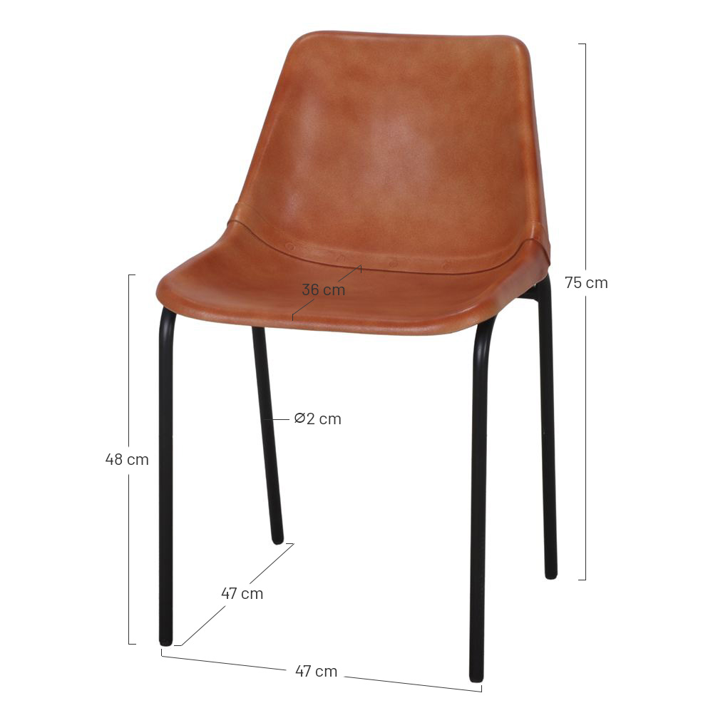 Esta cadeira de couro Mali dará um toque de beleza ao teu interior. Combinando um estilo industrial com um assento em pele sintética, tem um aspeto elegante que irá realçar o teu interior. As nossas cadeiras são produtos de alta qualidade, cuja estrutura é feita de cabos de aço soldados e um assento em pele sintética. Elegantemente segmentado por costura, o assento em pele oferece um toque de luxo. O assento almofadado proporciona o conforto necessário para relaxar durante várias horas. A base metálica tem um acabamento industrial que combina na perfeição com o assento. Os pés metálicos são robustos e estão equipados com tampas de proteção para ajudar a proteger o teu chão.