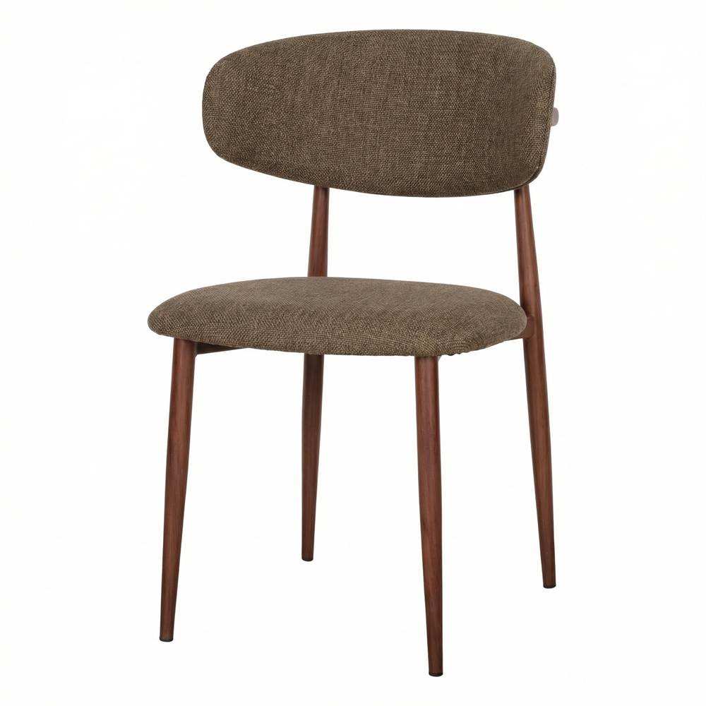 O assento e o encosto, cuidadosamente estofados em tecido, oferecem uma experiência confortável e acolhedora. As suas linhas suaves e envolventes abraçam o corpo, favorecendo uma postura confortável durante longas conversas ou dias de trabalho. A textura do tecido dá um toque decorativo, acrescentando nuances subtis ao conjunto.