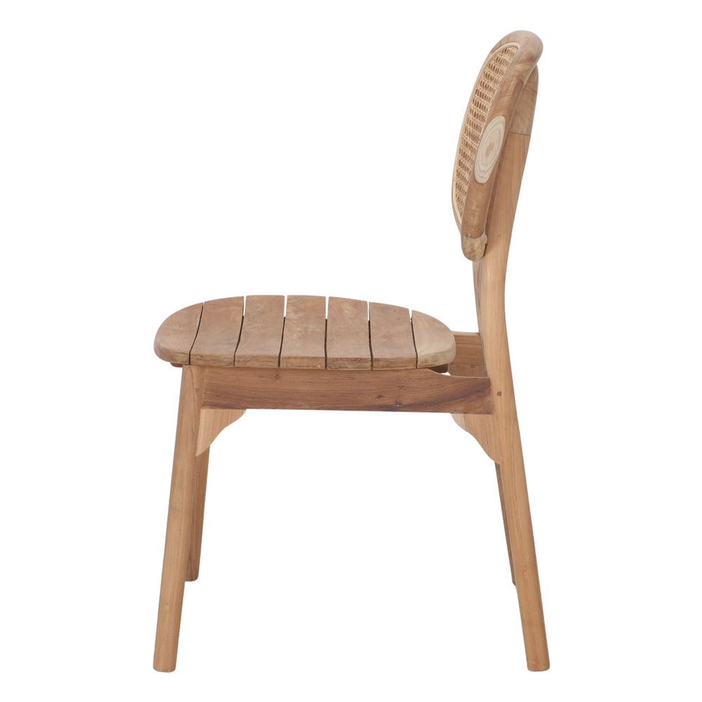 Fabricada em madeira de teca maciça de alta qualidade, a cadeira Adaline destaca-se pela beleza do seu grão natural. O acabamento claro realça o seu aspeto orgânico e luminoso, dando-lhe um toque acolhedor e versátil que se adapta a uma variedade de estilos de decoração, desde interiores rústicos a interiores mais contemporâneos. O encosto em cana entrançada não só acrescenta um pormenor artesanal, como também melhora a respirabilidade e o conforto do assento.