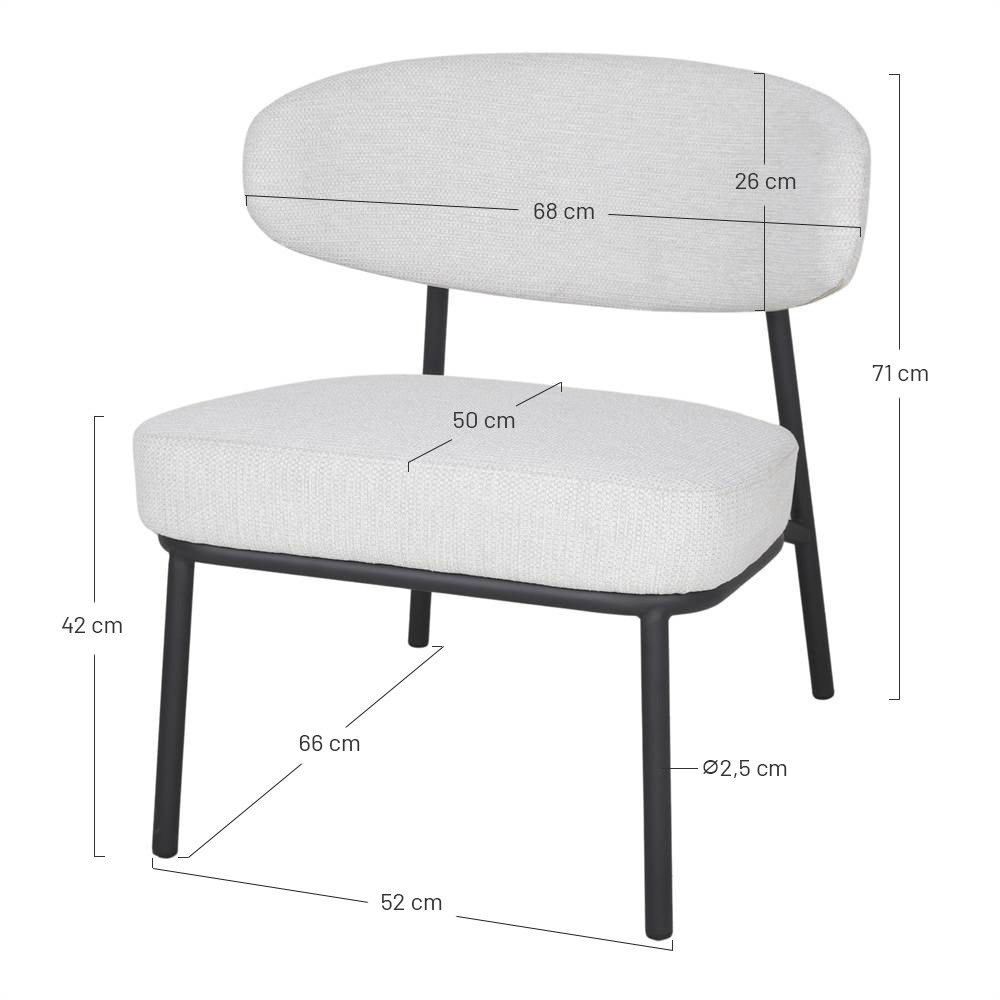 O estofo têxtil confere uma sensação de conforto e aconchego, convidando-te a relaxar e a desfrutar de momentos de descanso ou de conversa no seu abraço acolhedor. A sua versatilidade torna-a ideal para salas de estar, áreas de leitura ou mesmo quartos, dando um toque de estilo e personalidade a qualquer ambiente.