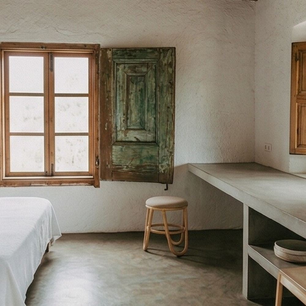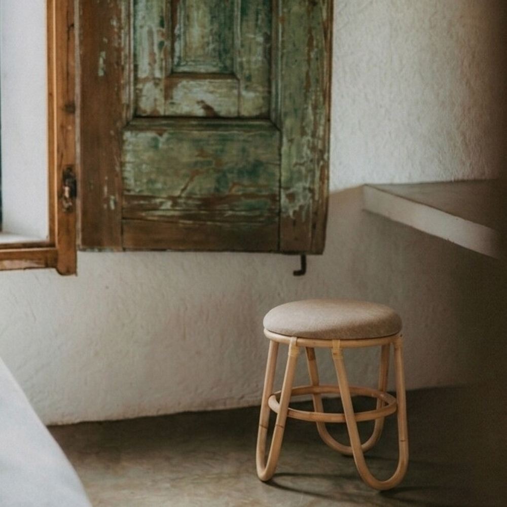 Banco baixo de rotim Luanda, estilo mediterrânico.