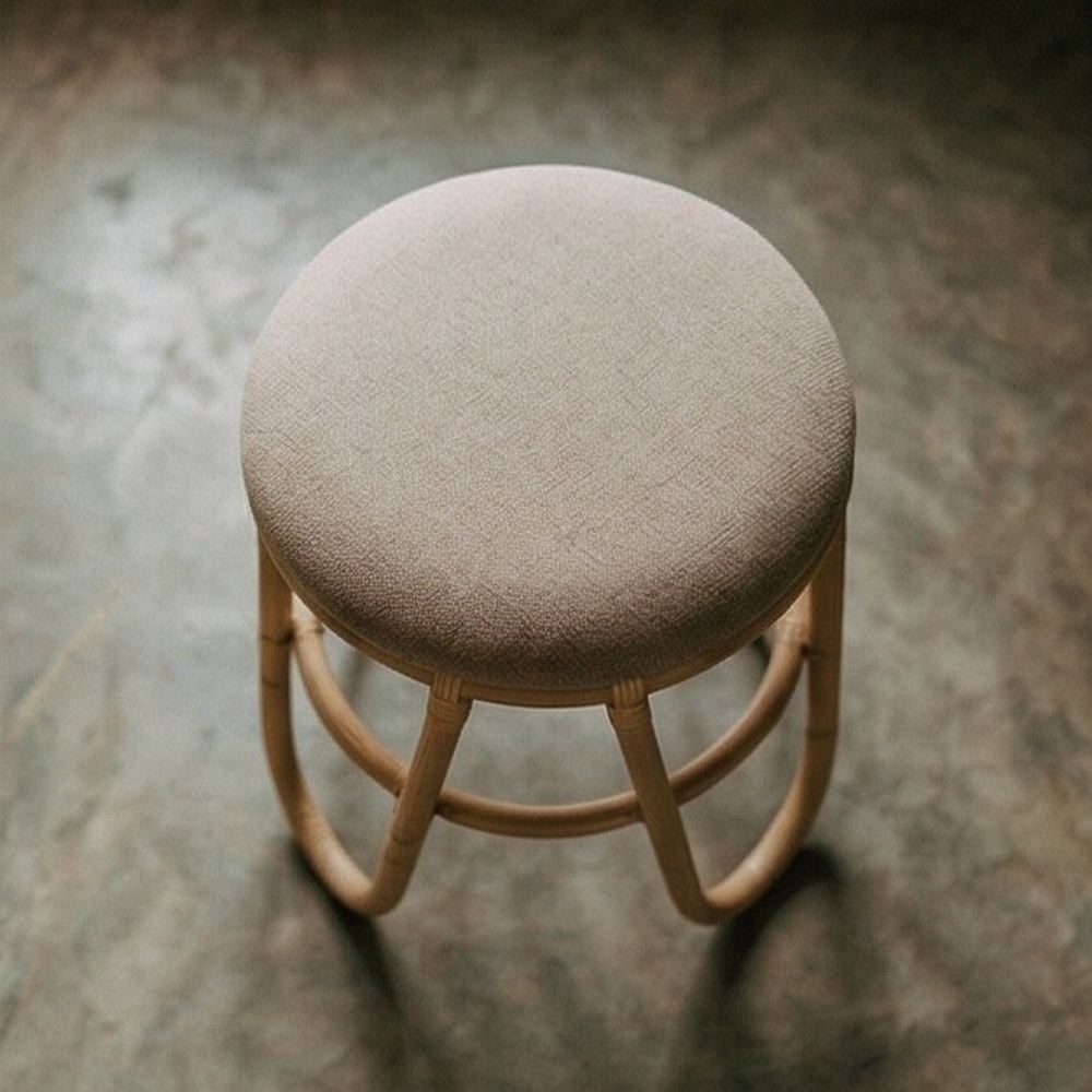Assento estofado em tecido.