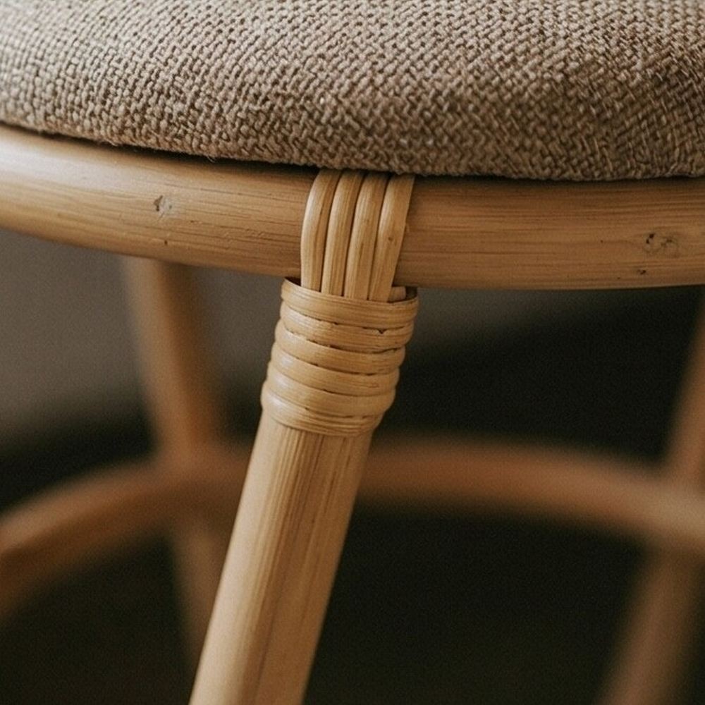 Fabricado em rotim natural e cosido com medula.